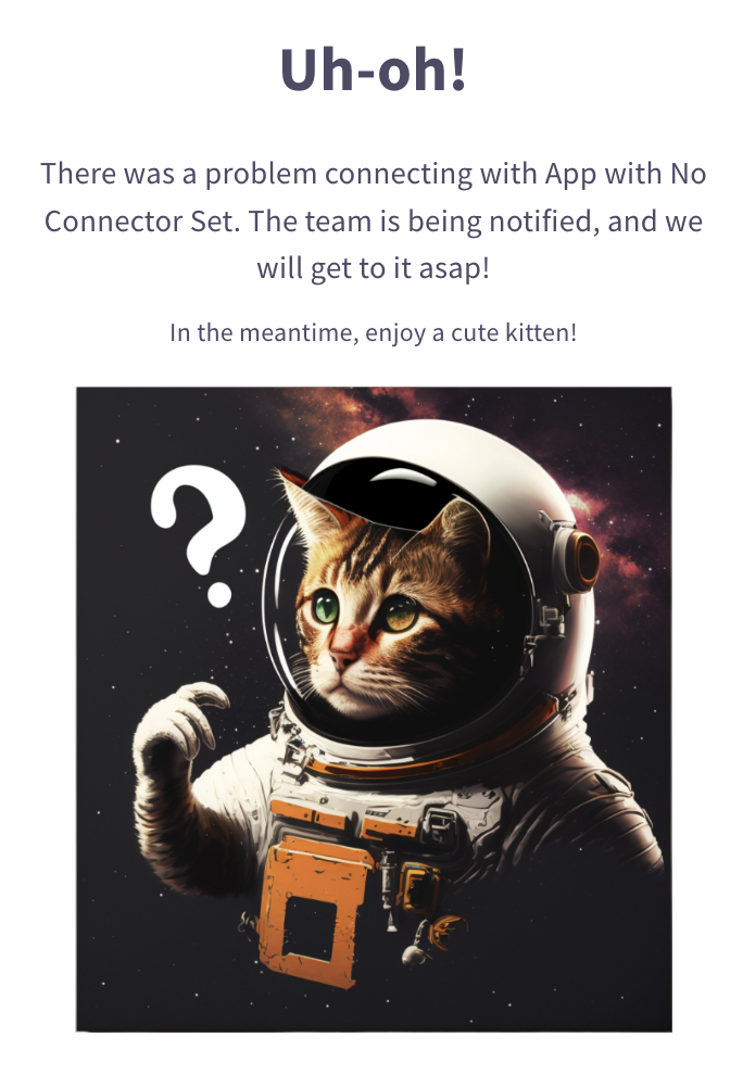 We now show a friendlier message to the user that is less jarring but lets the user know we have been notified and are working on it. We threw some nice cat photos in there for good measure to keep things lighter.